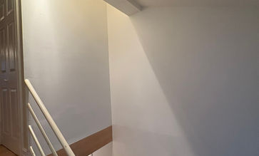 Les murs de la chambre ont été reconstruits en gypse, puis complétés par l’installation de moulures et de cadrages pour une finition propre et harmonieuse. Finalement, des travaux de peinture ont été effectués dans la chambre, le couloir ainsi que dans la cage d’escalier, afin d’uniformiser et de rafraîchir l’ensemble des espaces rénovés.